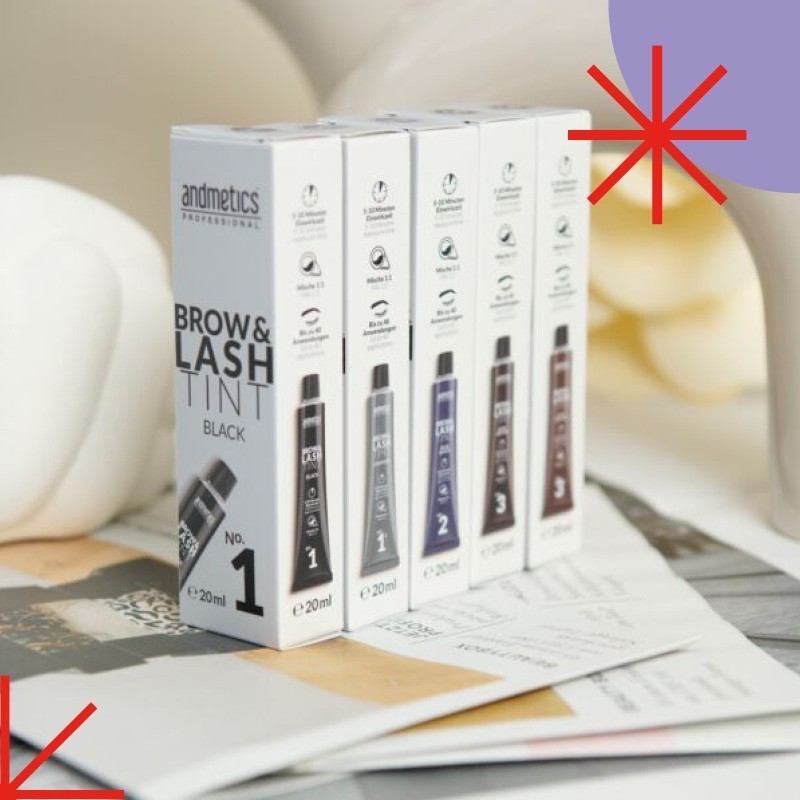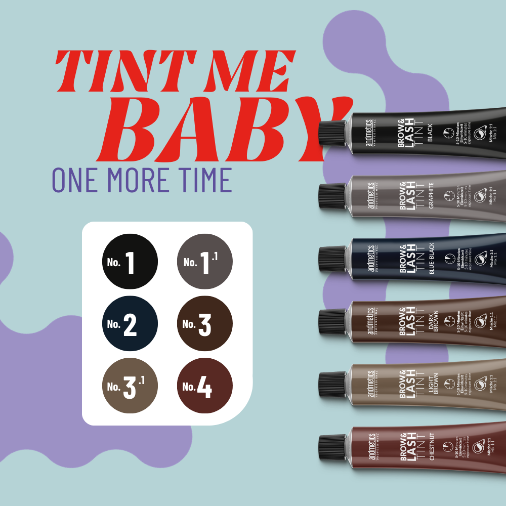 Die Einwirkzeit kann je nach gewünschtem Endergebnis variieren. Mit unseren andmetics professional Brow & Lash Tints werden sowohl die Härchen, als auch auf Wunsch die Haut mitgefärbt.
